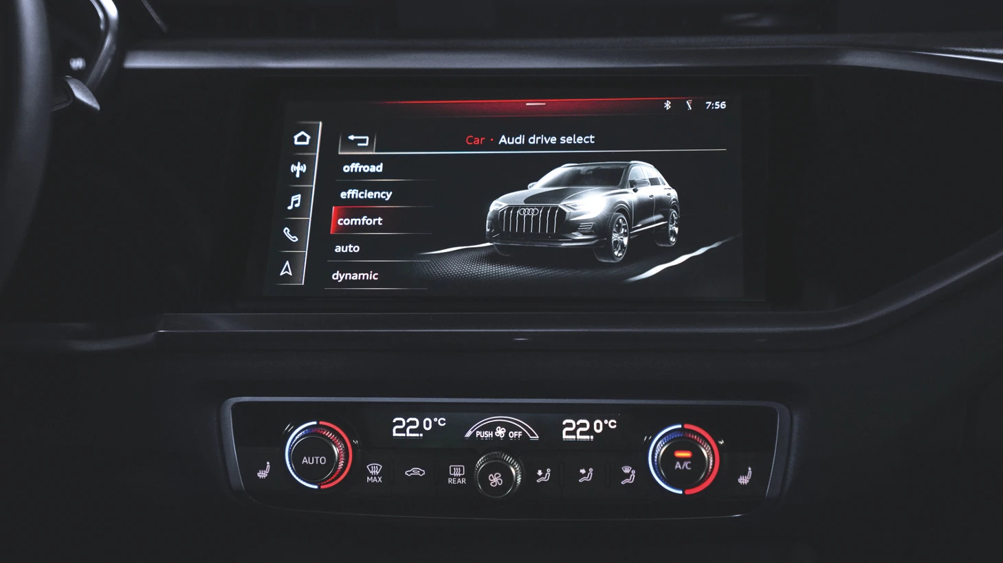 The operating and display concept of the family SUV has been overhauled from the ground up – Audi has done away with the analog instruments. Q3 35 TFSI comes with MMI radio there is a digital instrument cluster with a 10.25 inch screen diagonal, which the driver operates using the multifunction steering wheel. With MMI radio plus is standard equipment in Q3 35 TFSI S line, customers will have instrument cluster as Audi virtual cockpit with additional functions. It incorporates, for instance, the MMI functions and, in addition to road and engine speed, also displays information on music tracks. *This photo for advertising only