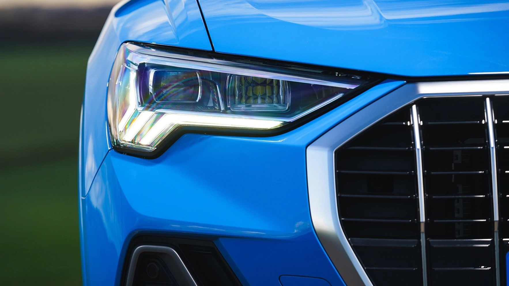 The new Audi Q3 looks much sportier than its predecessor. The Singleframe in octagon design and large side air inlets characterize the masculine front-end. Eight vertical bars divide up the radiator grille with its striking frame and reflect the SUV character. The headlights are narrow and run inwards with their wedge shape. Audi supplies them in three versions, all with LED technology. A highlight in the side view is the symmetrical lighting graphics of the headlights and rear lights. The shoulder line connects them from a styling perspective and provides an athletic overall impression with strong muscles over the wheel arches. The contours draw their inspiration from Audi’s quattro DNA and make the SUV seem even wider; the color-contrasting wheel arch trims emphasize the offroad look. Supported by a long roof edge spoiler, which also flanks the rear window at the side, the steeply raked D pillars of the body line also create an appearance of forward thrust.