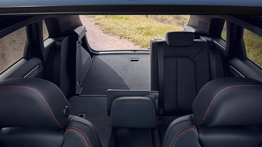 The rear seats can be moved fore/aft by 150 millimeters (5.9 in). Their three-way split backrests in the ratio 40:20:40 can be tilted in seven stages. Rear passengers also have a center armrest that features two cup holders as standard. Depending on the position of the rear seats and backrests, the luggage compartment capacity totals 530 or 675 liters (18.7/23.8 cu ft). With the backrests folded down the figure rises to 1,525 liters (53.9 cu ft). *This photo for advertising only